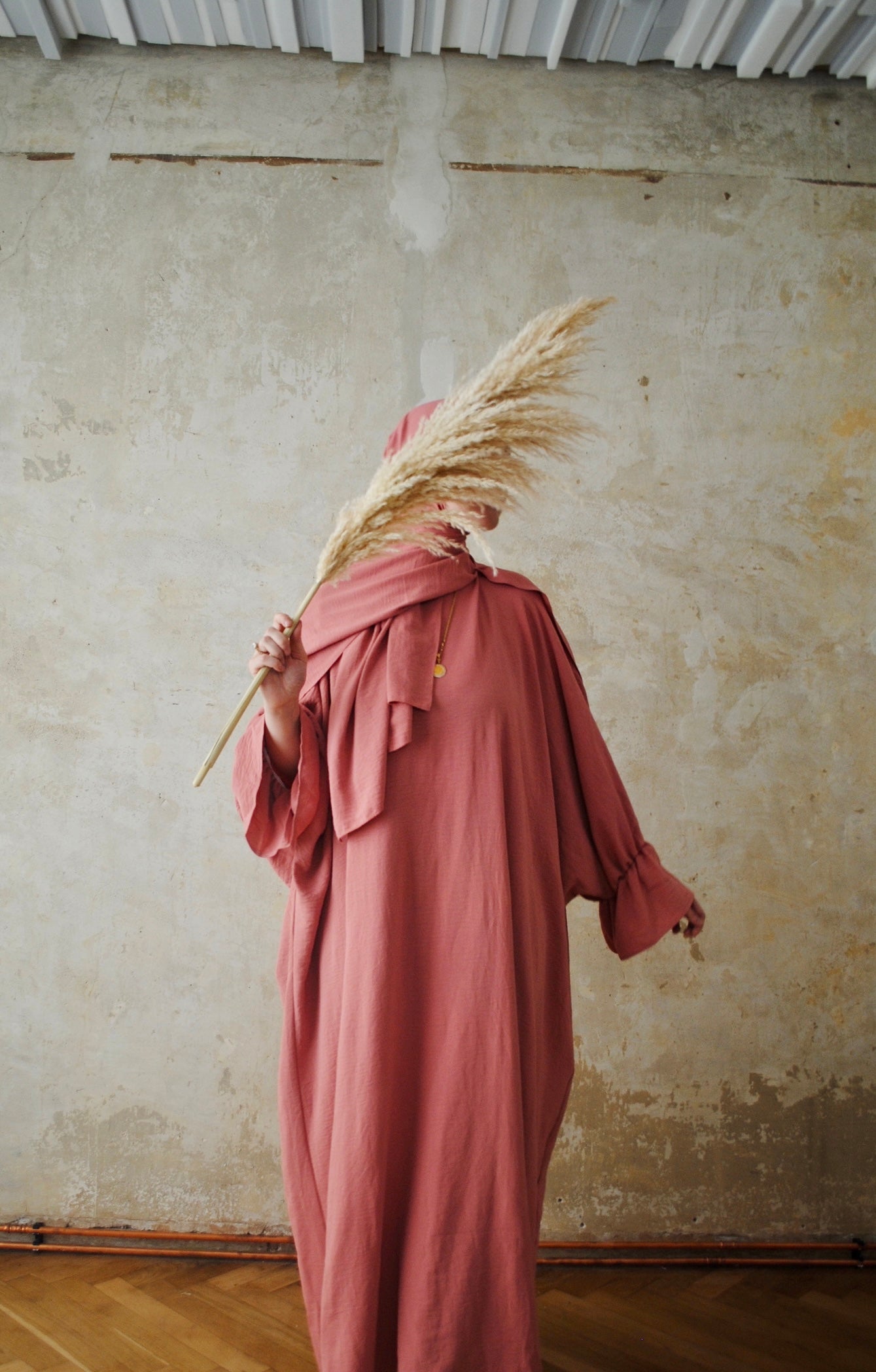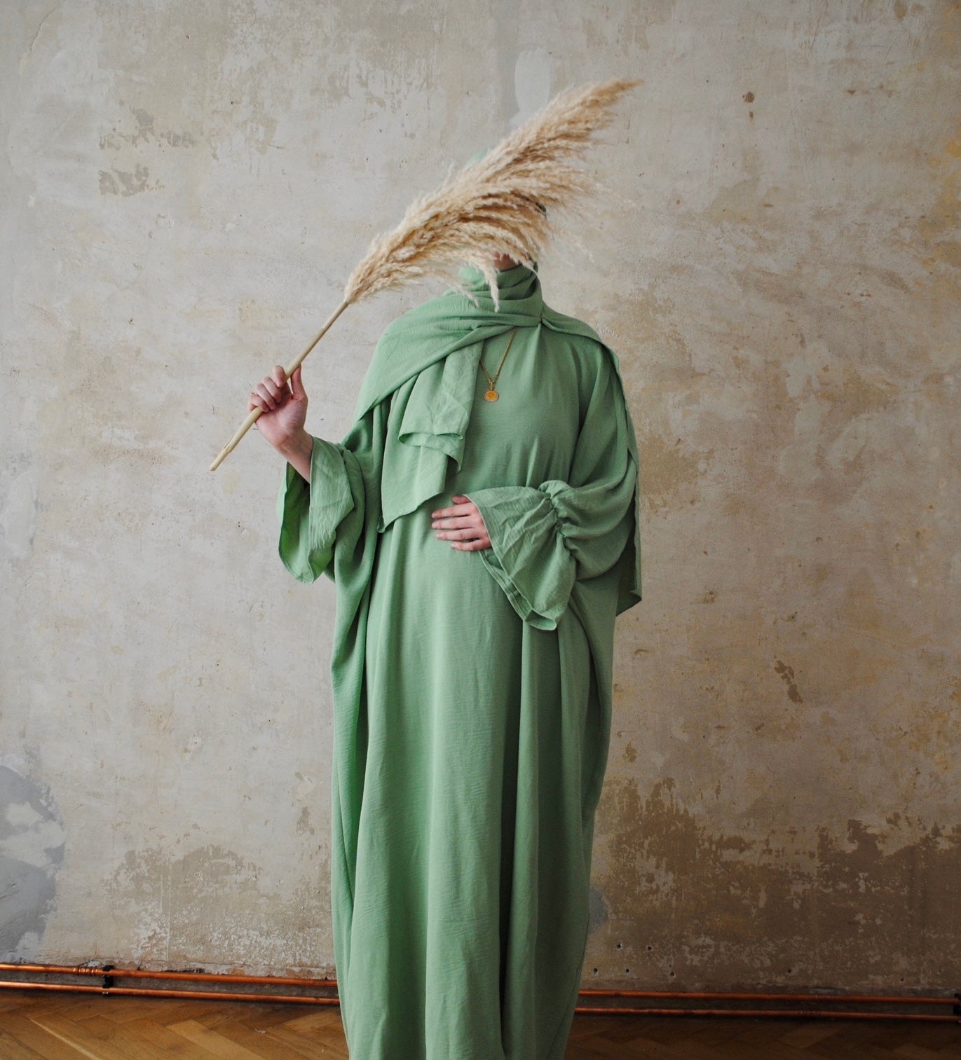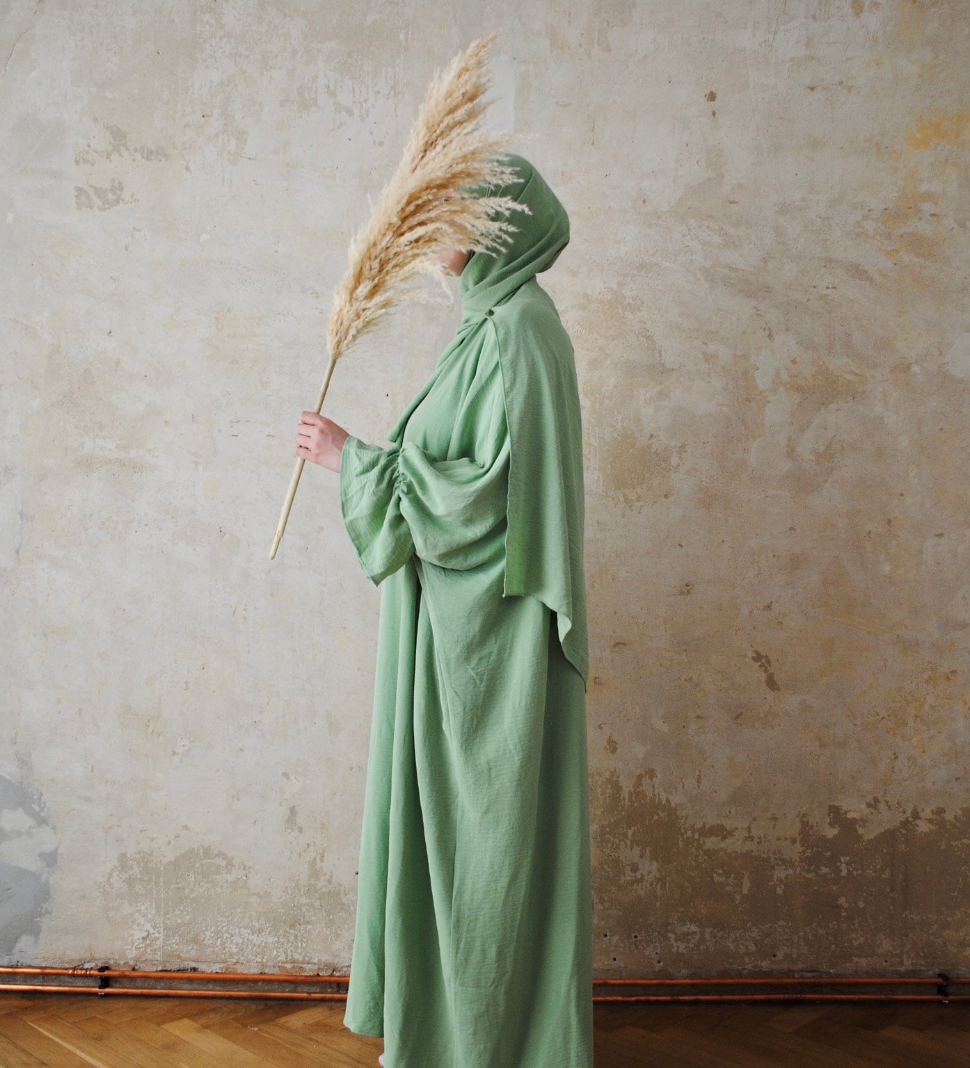 Lockere Abaya mit gerafften Ärmeln.
